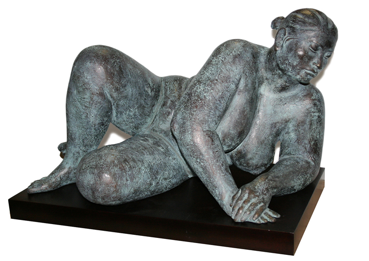 Original sculpture in bronze mounted on a two inch black metal base. Inscribed "Amaya I/VII 2004" on the woman's left foot.