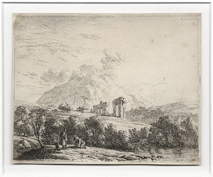 Original etching on laid paper with "Arms of Amsterdam" watermark, mounted on another sheet of laid paper. Signed and dated in the plate in upper right corner, and also with the number "11" in the lower right. In very good condition, apart from the 1/8" missing from the top left corner, framed with conservation materials. Sheet size: 4 7/8" x 6 1/16", Framed: 13 3/8" x 14 1/8" Catalogue reference: Bartsch I (1) 11-I (170) |
