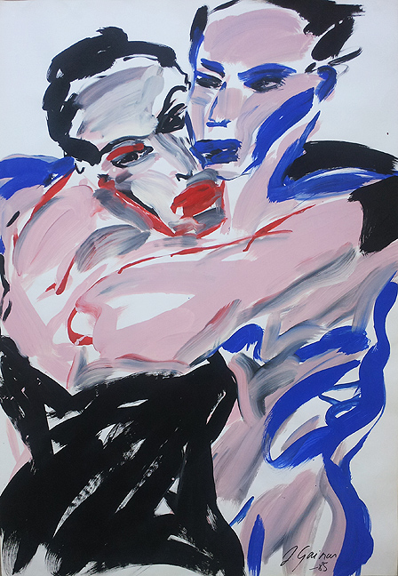 Painting on paper. Hand signed and dated “Gainon 85” lower right. In good condition. Sheet size: 42” x 29”