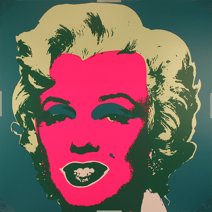 Color screenprint on museum board with the highest quality archival inks, (from a set of 10) after the original Marilyn Monroe screenprints by Andy Warhol. Stamped in blue ink, "Published by Sunday B. Morning" and "fill in your own signature," verso. Published by Sunday B. Morning. In excellent condition. |